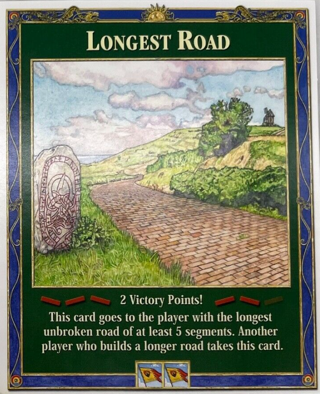 Achievement for being the first player to build 16 roads and 6 Settlements. |