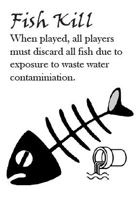 2 Fish Kill Cards When played, all players must discard all fish due to exposure to wastewater contamination. | |