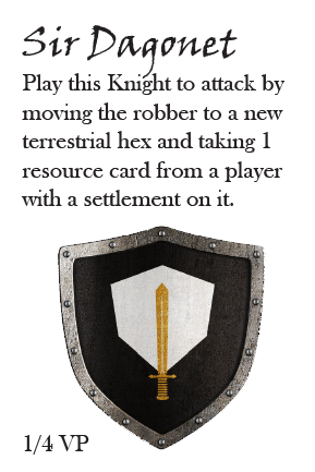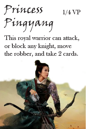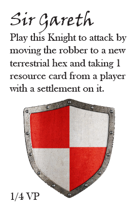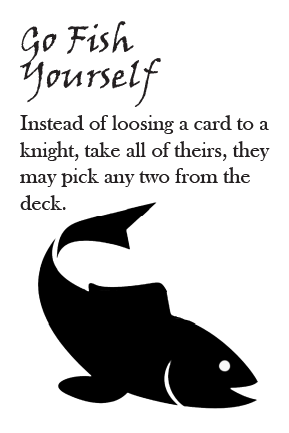 2 Go Fish Cards Instead of losing a card to a knight attack, take all of theirs, and they may now pick any 2 from the bank. | |