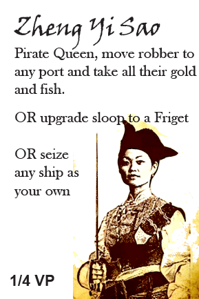 - A port with 2 Sloops, is 4 fish every time a 7 is rolled, and can be traded for anything.