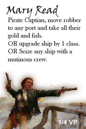 - Any player may capture it by playing a pirate card, or by sailing into the same hex and feeding the crew.