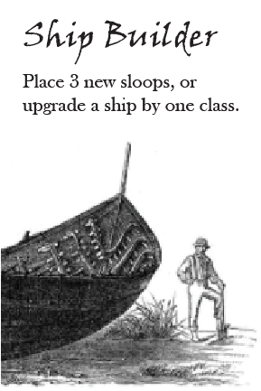 6 Ship Building Cards Place 4 new Sloops anywhere as if you had just bought them, OR Upgrade any sailing ship by one class. | |